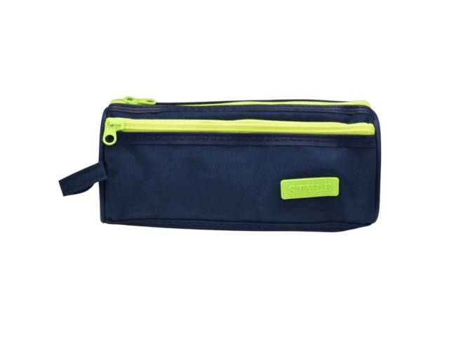 Cartuchera de tela con doble bolsillo 21x6.5x8cm. Azul