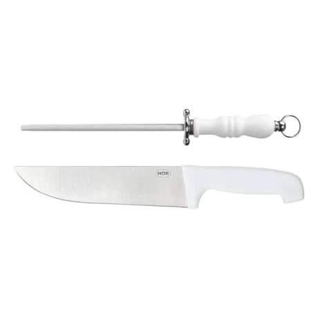 Set asador: Cuchillo y chaira mango blanco - BLANCO