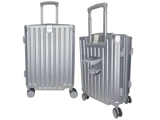Valija de viaje rígida gris 24" con USB y porta vaso
