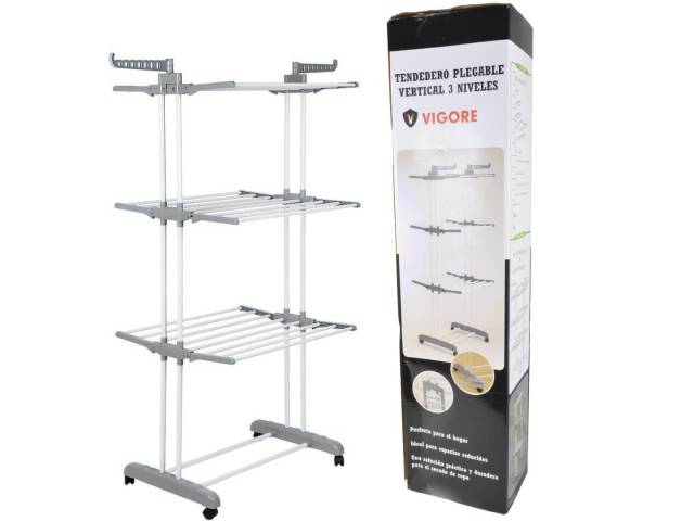 Tender vertical 3 estantes con ruedas. Vigore 170x76x64cm