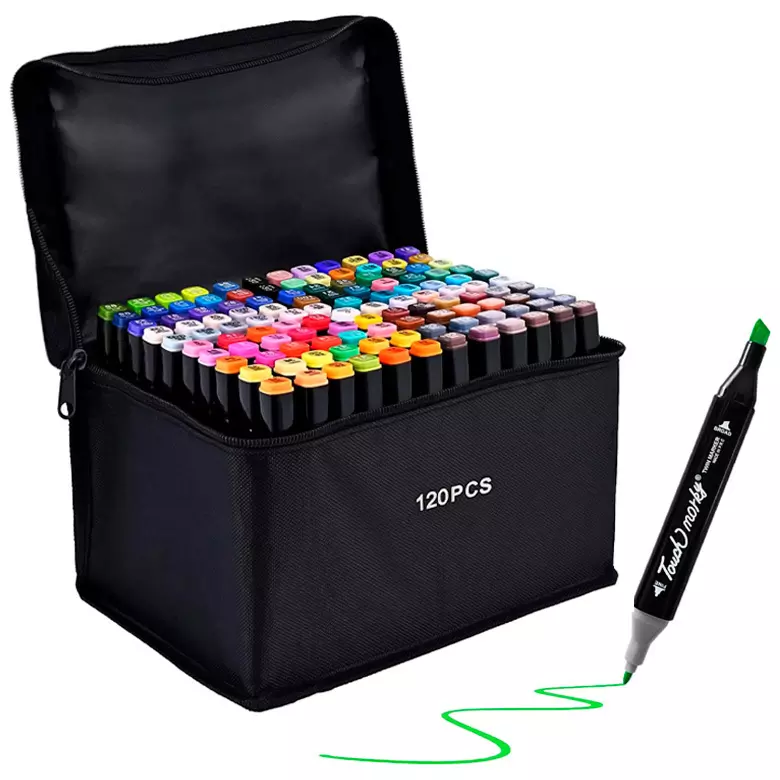 Set de 120 marcadores con doble punta + estuche organizador