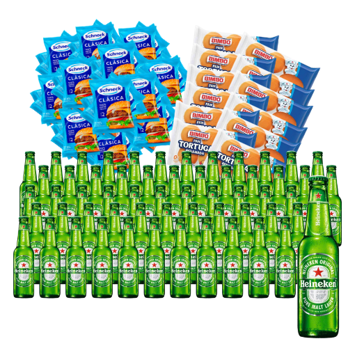 72 Hamburguesas Schneck + Tortugas Bimbo + 72 Heineken 330cc