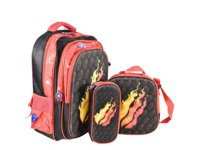 Mochila roja con lonchera térmica y cartuchera 40x30x17cm