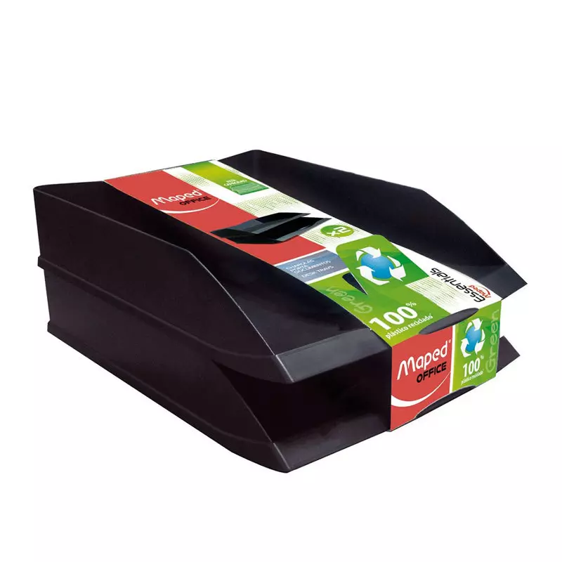 Bandeja Apilable Plástico Reciclado Negro x 2 Maped