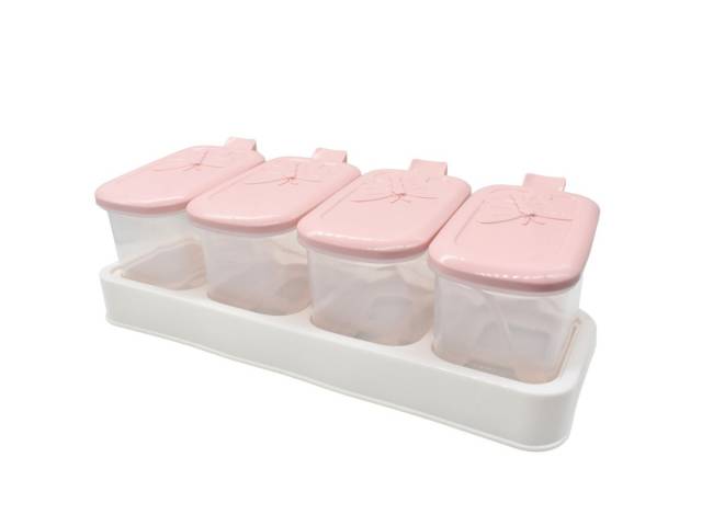 Set de condimenteros con cucharas y soporte x4 unidades