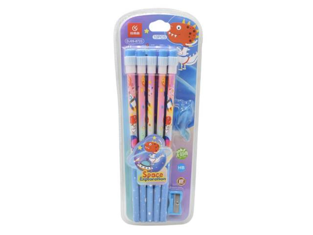Lápices dino con goma HB X10 unidades + sacapuntas