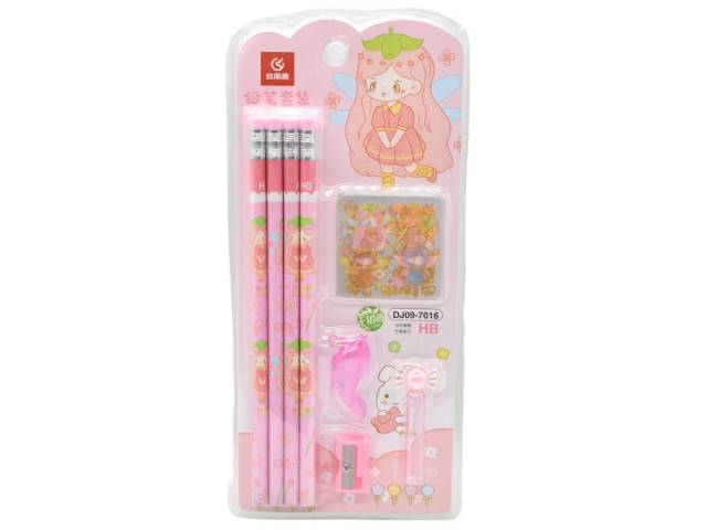 Lápices con goma HB X8 unidades con accesorios rosa